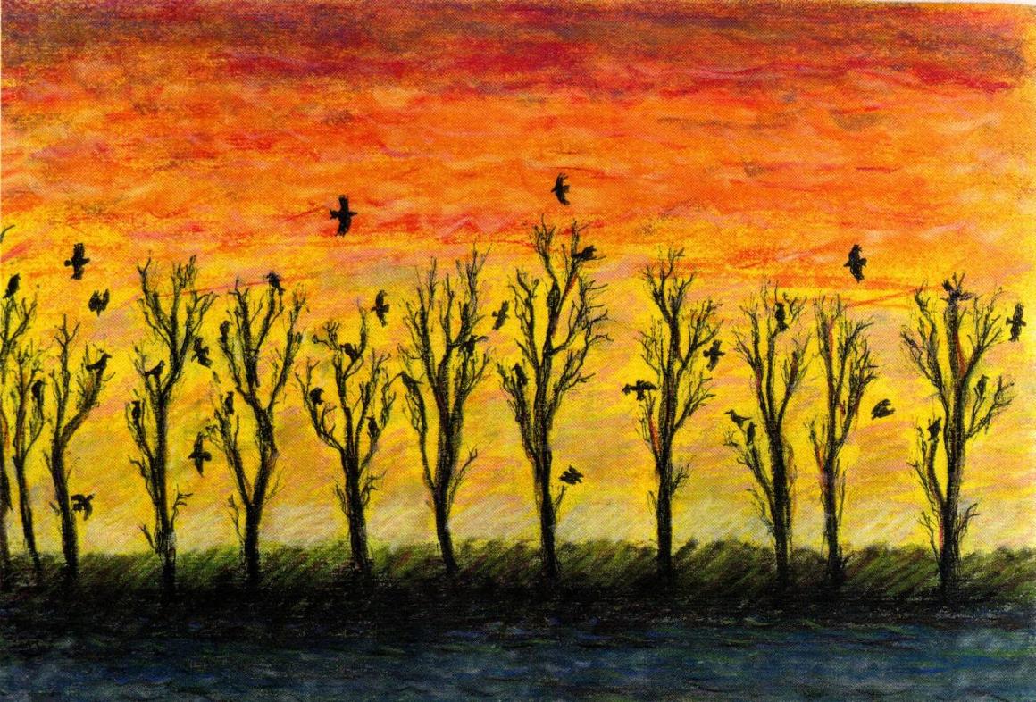 Many Crows ~ NuPastel & Ink, R.S. Russell